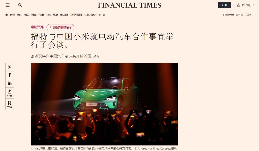 小米汽车也回应称,有关“小米正与福特汽车商谈合资企业的报道”是假的。小米目前没有在美国销售产品和服务,也未就此进行谈判。